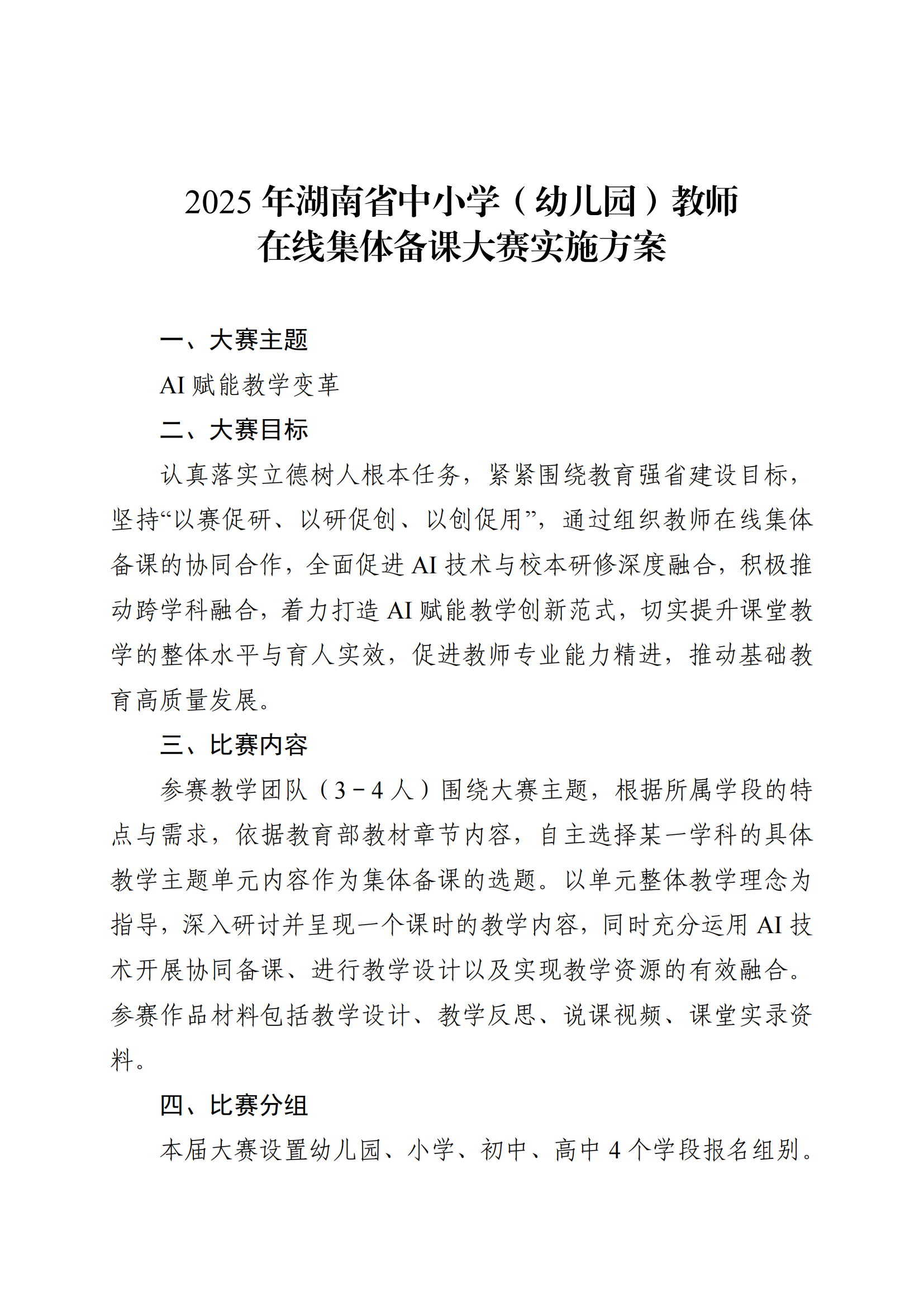 2025年湖南省中小学(幼儿园)教师在线集体备课大赛实施方案
