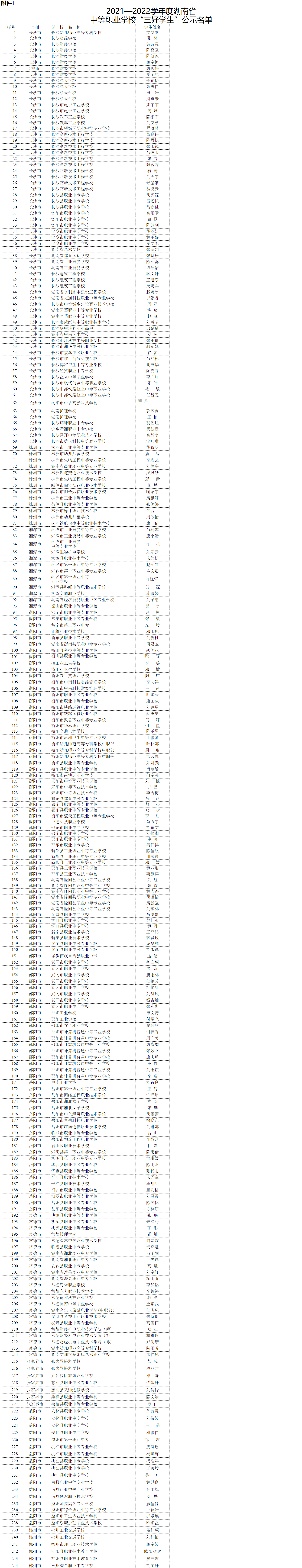 附件:1.2021-2022学年度湖南省中等职业学校“三好学生”