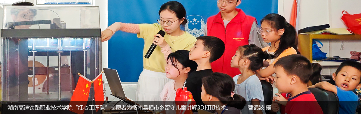湖南高速铁路职业技术学院“红心工匠队”志愿者为衡南县相市乡留守儿童讲解3D打印技术。