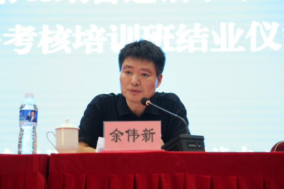 省语测中心主任余伟新首先对本期培训班的成功举办给予了充分肯定,对获得省级测试员资格的学员表示热烈祝贺,向全体学员对中心工作的支持和配合表示衷心感谢。他指出语言文字事业关乎社会政治、经济、文化、科技等多领域的发展,培养锐意创新、规模宏大的语言文字人才队伍,对繁荣和发展我省语言文字事业具有重要意义。开展省级普通话水平测试员培训班,正是为了发展壮大以测试员为代表的语言文字人才队伍,为全省语言文字工作特别是推普工作提供强有力的智力支撑。